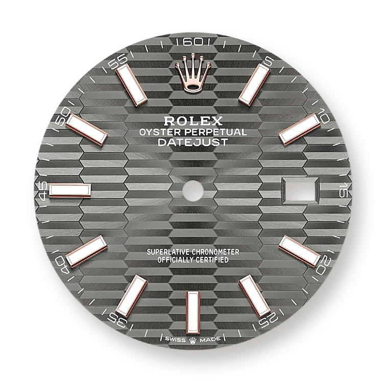 - Dial color: Slate dial with fluted motif and Indexes of 18k Everose Gold with luminous fill as hour markers