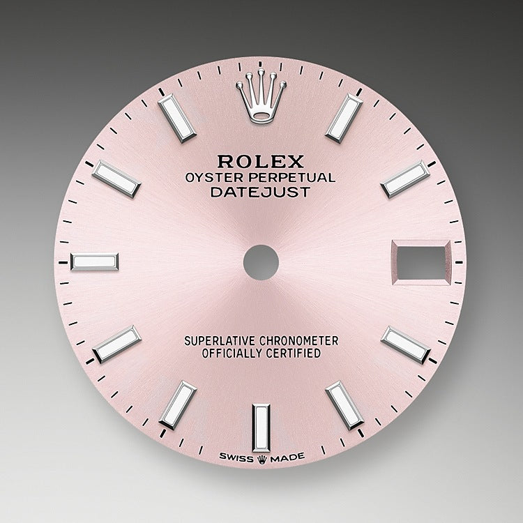 - Dial color: Pink dial with a fine sunrays and Indexes of 18k White Gold with luminous fill as hour markers